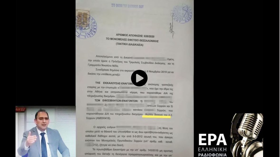 Φ.ΒΑΓΕΝΑΣ: Ακύρωση τραπεζικής απαίτησης 140.000€ λόγω πανωτοκίων κι επιστροφή 22.000€